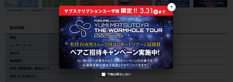 キャンペーン対象の方は、ユーザ情報ページにログイン後と上部メニュー部分の右端にバナーが表示されます。