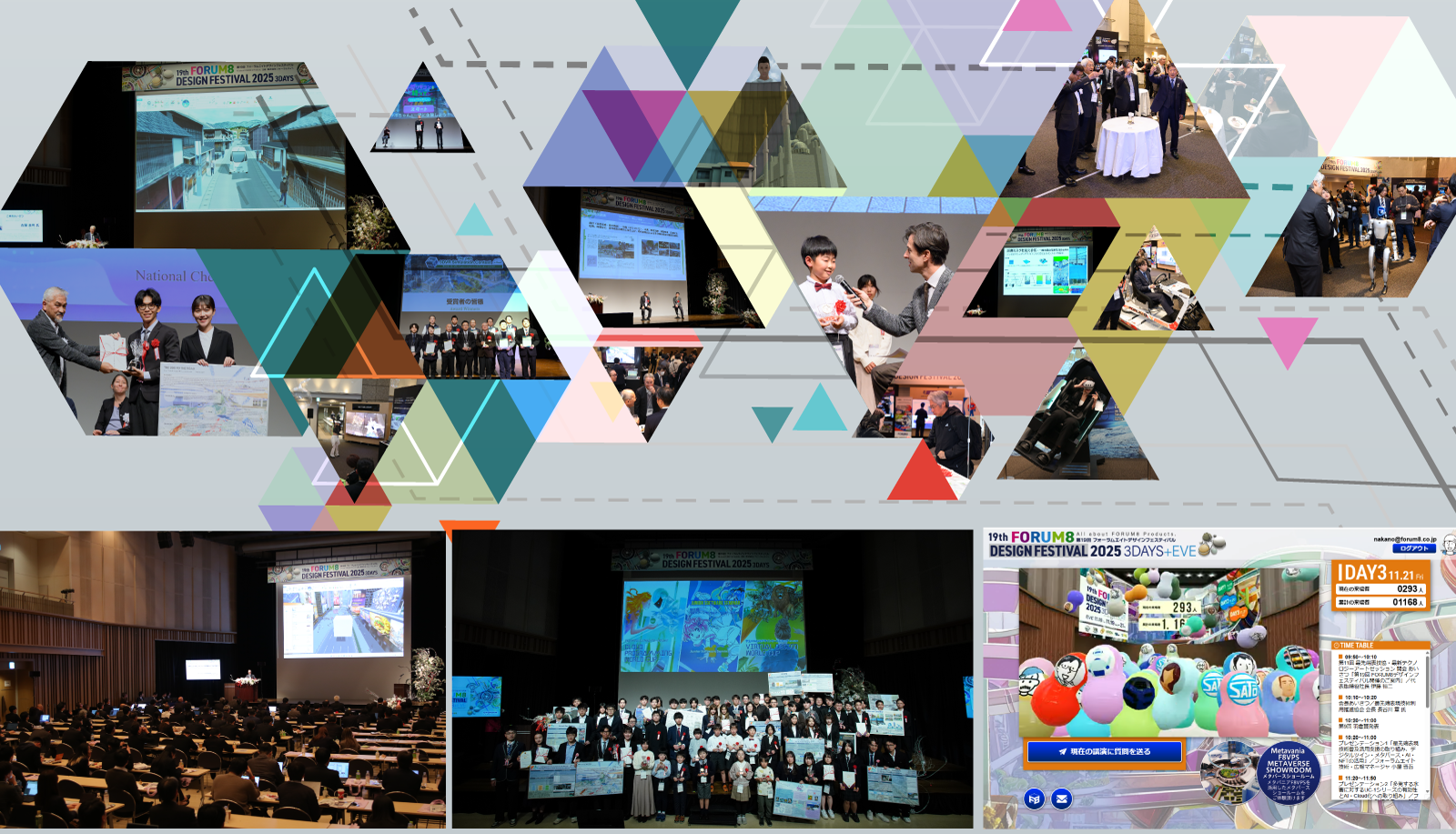 本年のデザインフェスティバルは、Eveを受け「第10回 自動運転・サステナブルカンファランス」「第26回 UC-win/Road協議会(VRカンファランス)」「第11回 最先端表技協・最新テクノロジーセッション」「第18回 国際VRシンポジウム」および「第19回 デザインカンファランス」を構成する各種講演や発表、「第24回 3D・VRシミュレーションコンテスト・オン・クラウド」「第13回学生クラウドプログラミングワールドカップ(CPWC)」「第15回 学生BIM & VRデザインコンテスト オンクラウド(VDWC)」「第11回 ジュニア・ソフトウェア・セミナー」「第9回 羽倉賞」および「第12回 ナショナル・レジリエンス・デザインアワード(NaRDA)」の公開審査や表彰式、出版書籍の著者講演などにより展開されました。
