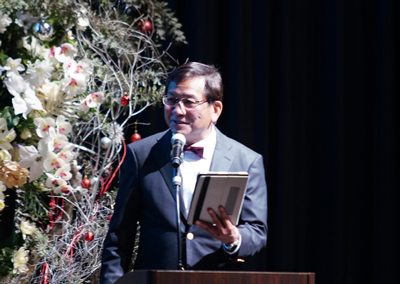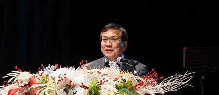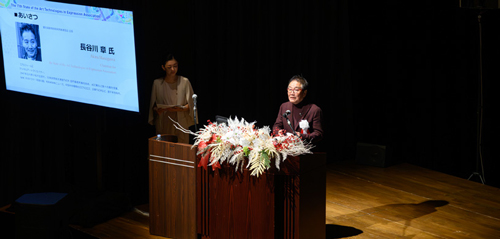 長谷川章氏による挨拶では、デジタル掛け軸をはじめとする表技協の活動を紹介