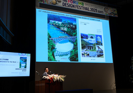 Day1午後の部の最後は、フォーラムエイト パブリッシングの新刊2冊の執筆者・監修者による出版書籍講演で構成されました。初めに、「シビルエンジニアの図鑑 –Infrastructure for the Next-」の著者、吉川弘道・東京都市大学名誉教授が講演。土木の世界に50年間携わる中で自ら紡いできた、土木構造物のすばらしさを次世代に伝えられる「絵本を作りたい」との願いが具体化。本書では橋梁を始めとする各種土木構造物や構造解析・設計などシビルエンジニアリングに関わる専門的な知識を高校生・大学生に理解してもらうことを意図し、写真や絵をふんだんに掲載。その過程でポンチ絵の効能を再認識し、その活用復活にも繋げたいと説きます。