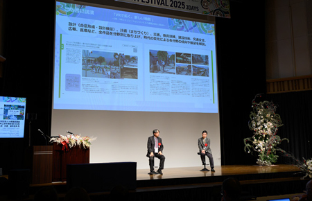 Day1を締めくくる講演は、2026年3月出版予定「VRで拓く、新しい地図 ~3D・VRシミュレーションコンテスト総覧2002-2024~」((一財)VR推進協議会 著)の監修者、関文夫・日本大学教授と傘木宏夫・NPO地域づくり工房代表が対談。3D・VRシミュレーションコンテストで昨年まで23年間にわたる受賞作品全216点を年代・分野ごとに整理し収録。VRの活用事例の変遷とともにVR進化の歴史を辿り、新たな活用のヒントを提示。両者が注目する作品に触れつつ、UC-win/Road自体の着実なステップアップも窺われる(関氏)といいます。