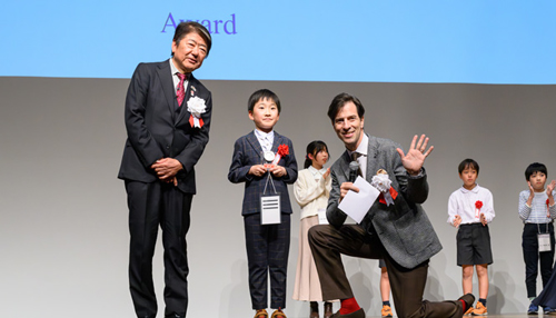 Day2の締めくくりとして、「第11回ジュニア・ソフトウェア・セミナー」表彰式が開催されました。冬・春・夏休みに開催されているジュニア・ソフトウェア・セミナーに参加した小・中学生のVR作品を紹介し表彰するもので、今回はゴールドプライズとシルバープライズがそれぞれ6作品、ブロンズプライズが9作品の受賞。パックンの司会進行で受賞作品の表彰・インタビューが行われ、炎のイルミネーションに彩られた神秘的な街や、お菓子の家、近未来の島と都市など、UC-win/Roadの機能を駆使して独創的な表現を発揮した力作が紹介されました。