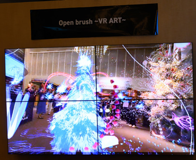 全セッション終了後に、今年は「クリスマス」をテーマにしたネットワークパーティを開催。コンテスト受賞者皆様への祝福の気持ちを込めると共に、講演者、出席者の皆様も交えた交流の場となりました。DJ ONI氏のミュージックプレイを背景に、参加者はドローンを使ってお菓子をゲットする「ドローンキャッチャー」ゲームなどを楽しみ、また、ARデバイスによりインタラクティブなグラフィックを描く「Open brush ~VR ART~」のパフォーマンスが会場を盛り上げました。