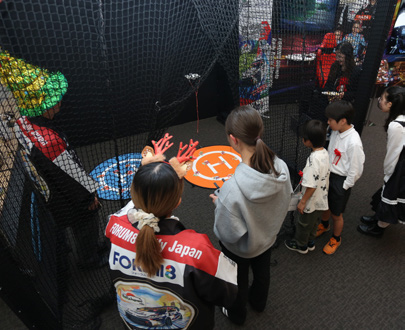 ホワイエではヒューマノイド型ロボットがお出迎え。ドローン操縦体験や、大阪・関西万博で展示された最新のシミュレーションの体験を実施