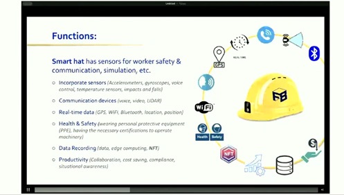 各種センサーと通信機能を搭載した作業員用ヘルメット「F8 Smart Hat」を提案。作業データの蓄積やエッジ処理が可能で、新技術を活用した管理に期待が寄せられています。