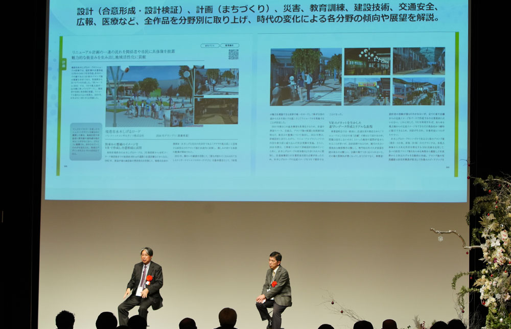 国内外から高度なVR作品が応募される“3D・VRシミュレーションコンテスト・オン・クラウド”。土木・建築、交通・自動車に加えて、環境、防災、教育・技術継承、また、メタバースでの事例など、活用分野が広がっています。VR推進協議会選考の「VRシステムオブザイヤー」の表彰も併せて実施しました。