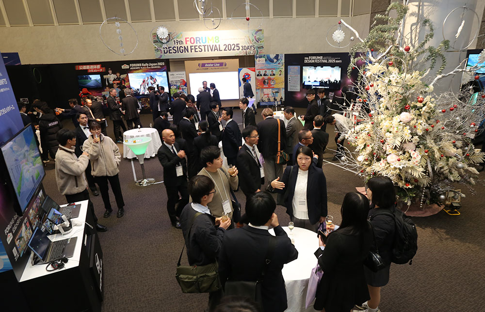 All about FORUM8 Products. 19th FORUM8 DESIGN FESTIVAL 2025 3DAYS+EVE 第19回フォーラムエイトデザインフェスティバル 品川インターシティホール・ホワイエ EVE11.18Tue 11.19Wed-11.21Fri
