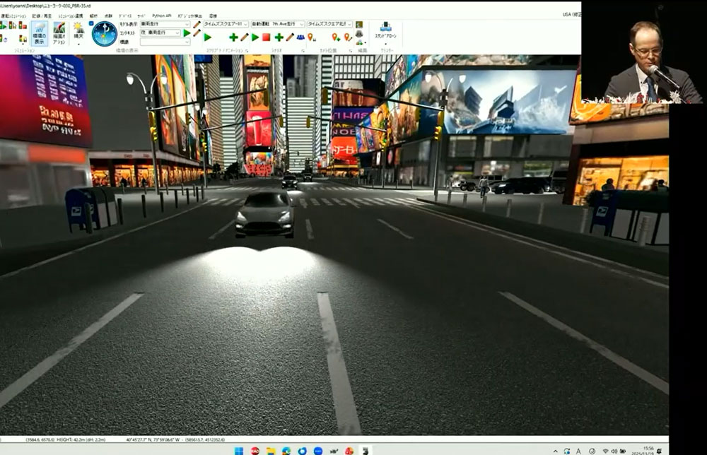都市のデジタルツイン環境を、PLATEAUをはじめとするオープンデータや各種基盤データ等を活用し高速に生成し、各種実験・訓練環境の構築に最適な「UC-win/Road」。構築されたデジタルツイン環境を活用した最新事例として、HILSやROS/ROS2等の自動運転ミドルウェアとの連携による実験環境の構築、AI画像処理により取得された交通・人流シミュレーションとの連携による活用、各種訓練用シミュレータの構築、メタバースプラットフォームである「メタバニアF8VPS」の活用などについて紹介しました。