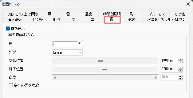 メニュー「環境の表示」をオンにすると、煙が表示されます。