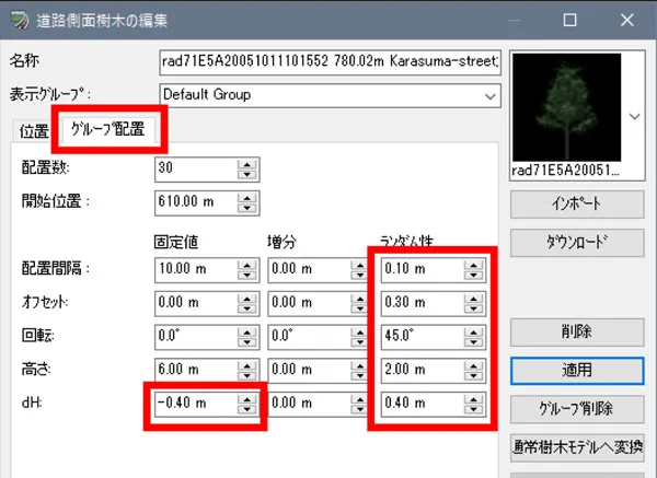 オブジェクトはモデルや樹木を指定できます。