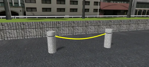 例えば、サンプルデータにあるような、画像の縦横いっぱいに描画されたテクスチャを使用した場合、次のY1で設定した高さ1.1mがそのままガードレールの高さになります。(下の参考図ではわかりやすいように黒色透過を外しています)