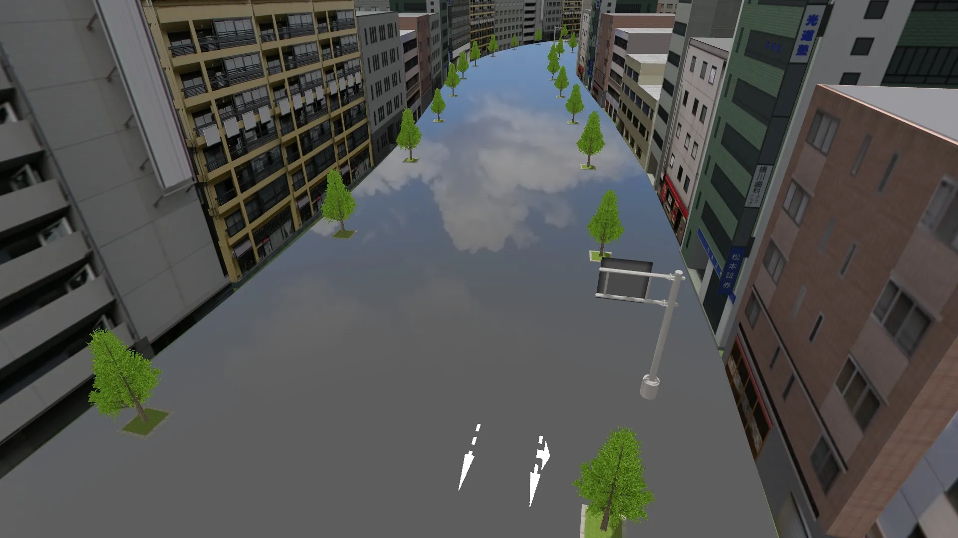 「道路平面図」で道路を作成し、カメラ位置を特に気にせずにメイン画面に戻った際、作成した道路がどこにあるかわからない、自分の位置がどこなのかわからない、という場合は、まず作成した道路を走行してみます。