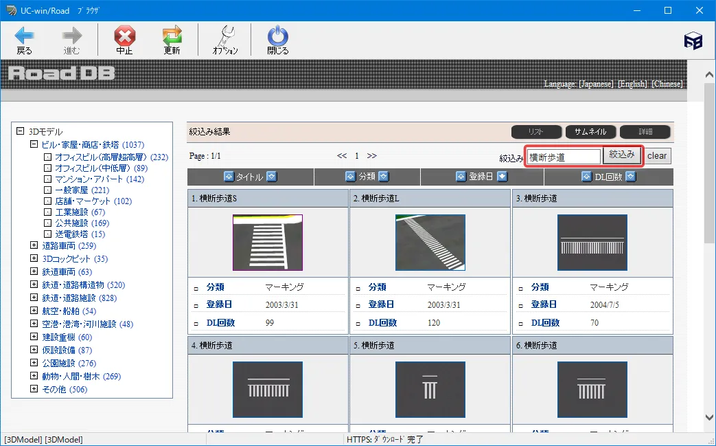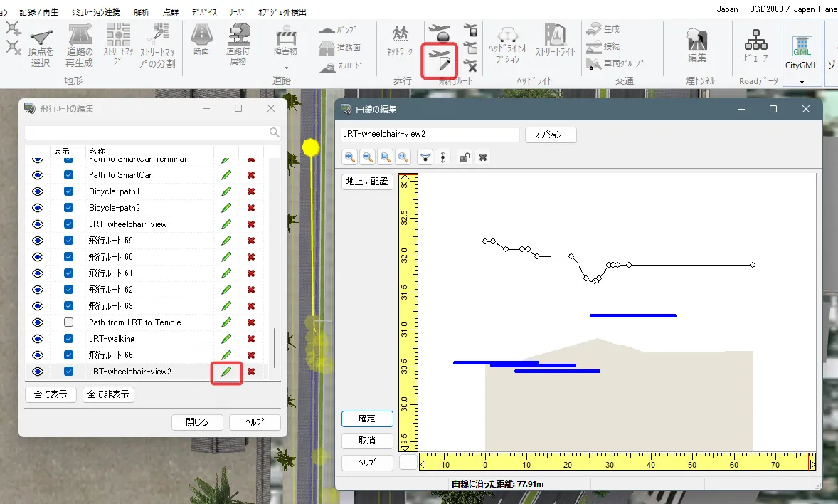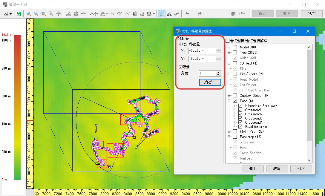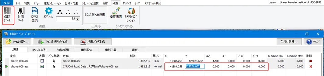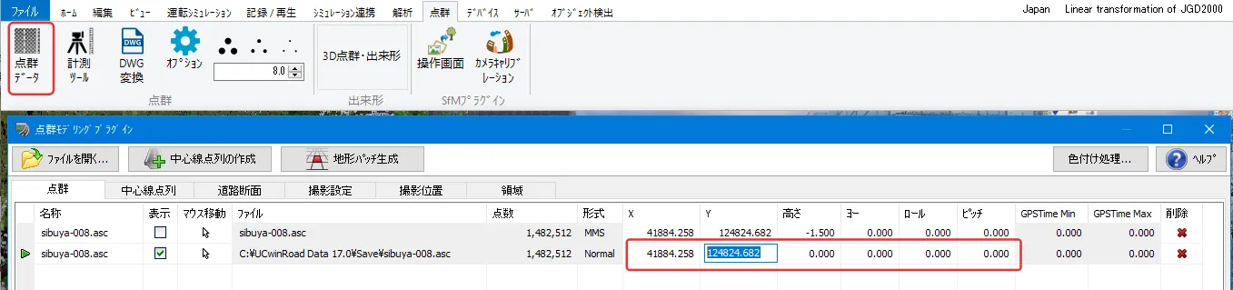 UC-win/Roadからエクスポートした3Dモデルや、他のソフトで編集してグローバル座標(平面直角座標系)を持つ3Dモデルを、簡単に座標値を基準に配置する方法があります。