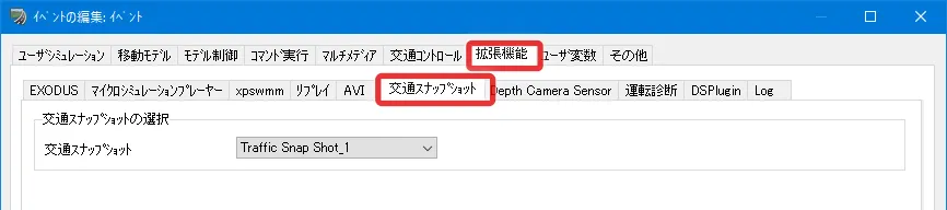 交差点の右左折時のウィンカー点滅はプログラム側で自動制御されますが、道路構造によってはウィンカーの点滅を変更したい場合があります。例えば画像のような交差点の場合、初期設定では下から進入して右に進む車は右折と認識され自動的に右ウィンカーを出しますが、この構造の場合は下から右に進むほうが道なりであり直進扱いになるため、通常はウィンカーを出しません。