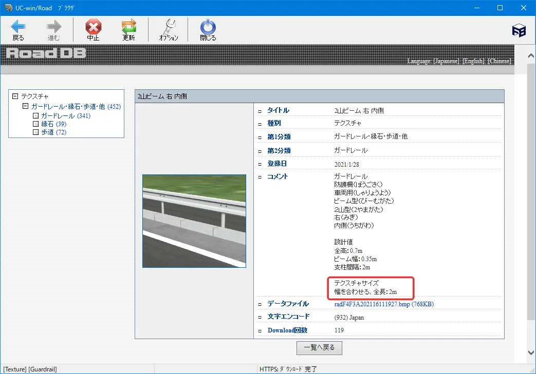 また、RoadDBからガードレールのテクスチャをダウンロードした場合、次の例では画像のガードレールの上部にスペースがあります。