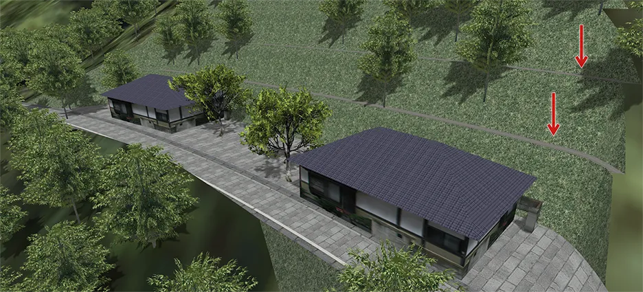 例えば、地理院タイルの読み込みは10mメッシュ相当のため、法面が実際と大きく異なるなど地形の精度が気になる場合は、さらに詳細な地形データを合成することができます。