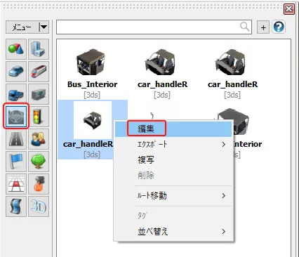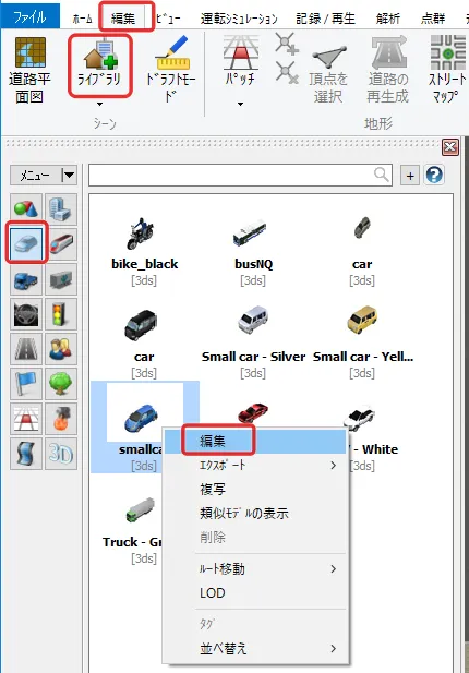 「ライブラリ」で特定車に該当する車両を複写や読み込みにより追加します。