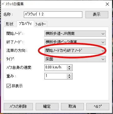 走行ルートを制御しない設定にする