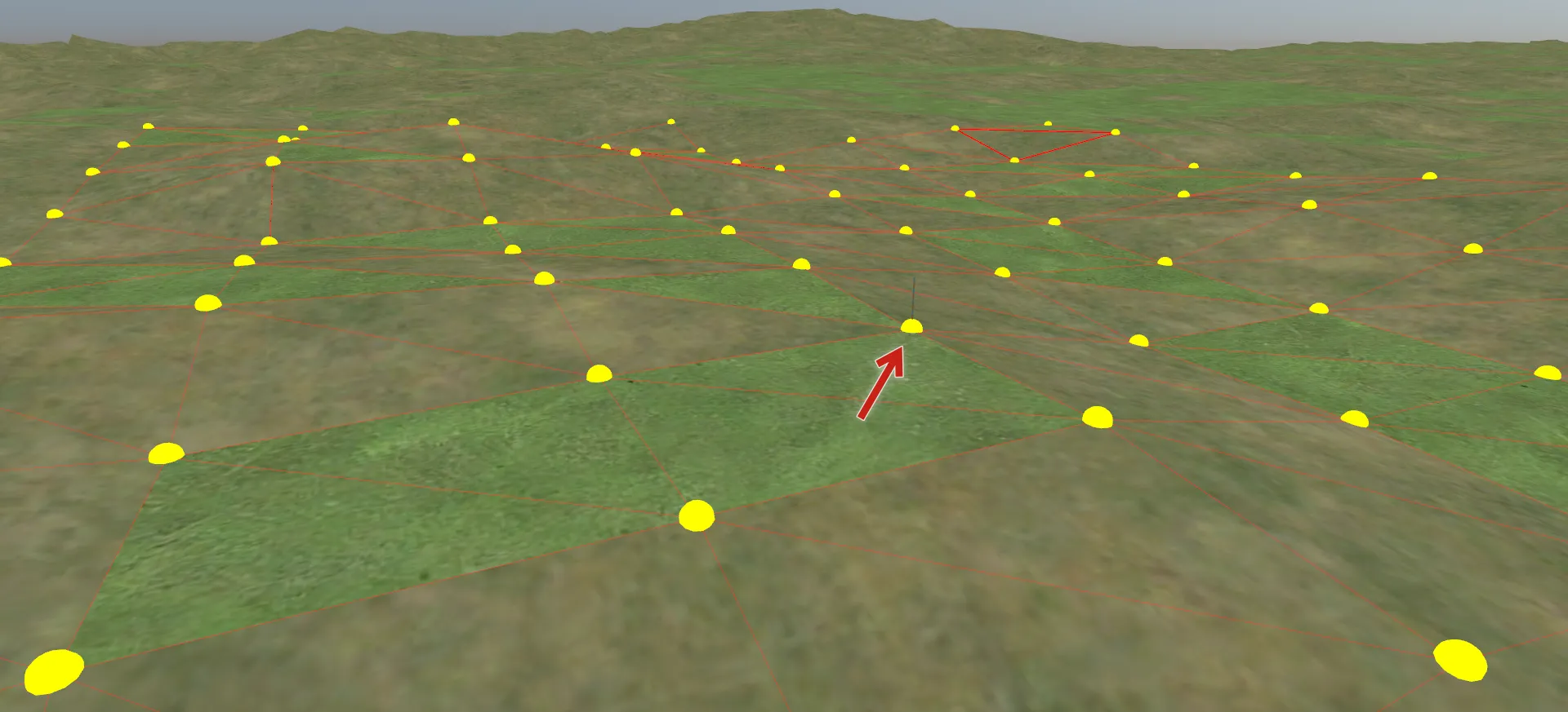 直近のデータを無視した場合の標高点とワイヤフレーム