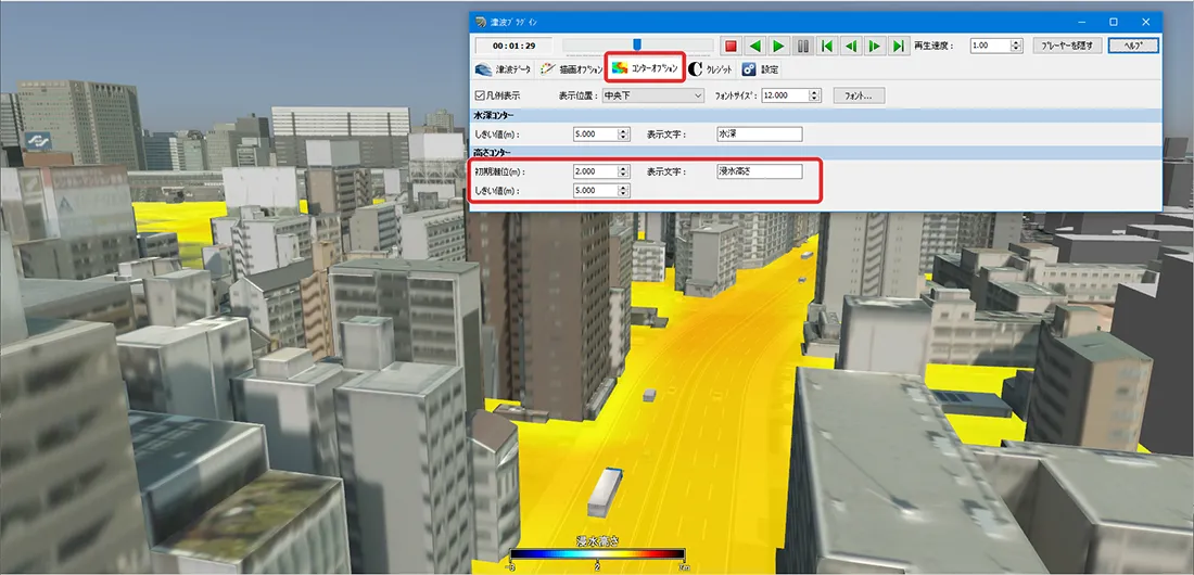 津波シミュレーションの可視化には、xpswmmプラグインが必要です。(Advanced, Ultimate)