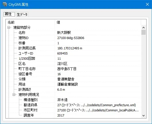 LOD1モデルは建物形状に高さが与えられた箱状のモデルですが、LOD2モデルは建物の屋根が定義されておりテクスチャが付いているモデルはテクスチャも表示されます。