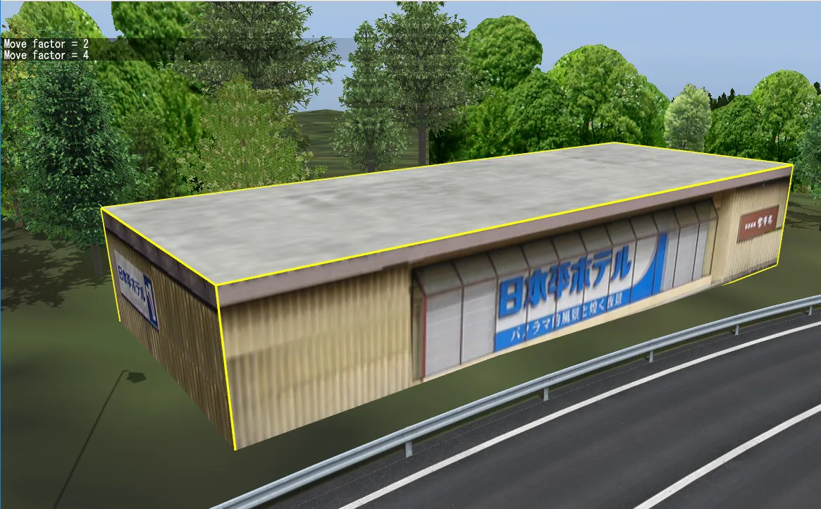 首都高速道路の一部区間をイメージしたデータです。ドライビングシミュレーションのために高パフォーマンスな表示を可能としています。