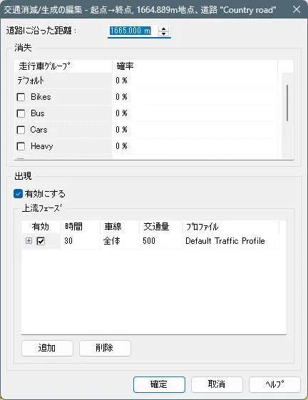 [Ctrl]+[Alt]+[D]キーの3つを同時に押しながら道路を走行している車両をクリックすると、クリックした車両を消すことができます。また、車両を右クリックして「交通流モデルを削除する」を指定することでも同様に削除することができます。交差点で交通流がデッドロックを起こしてしまった場合や、走行・運転の妨げになる車両がいる場合に便利です。