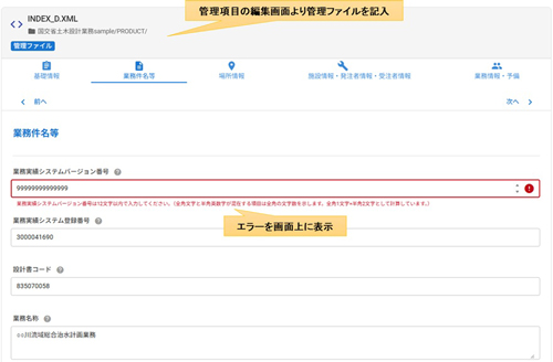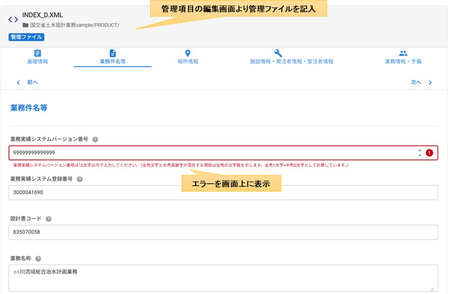 記入内容は画面上でチェックを実施しますので、不適合箇所の修正が簡単に行えます