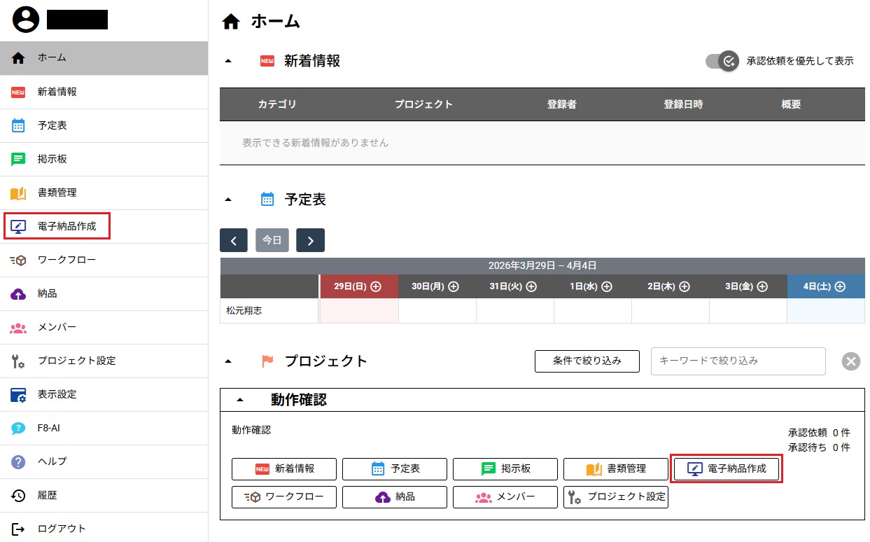 ▲「電子納品オンライン(情報共有システム)」ホーム画面