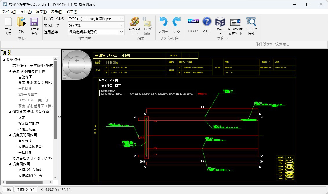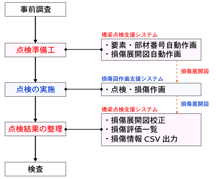 • 損傷パターン・旗揚げの作画機能と損傷図面の出力(点検調書(その5))