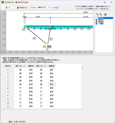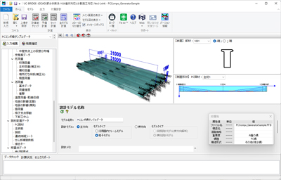 格子モデル・床版設計モデル(横方向解析)・横桁設計モデルにも対応しており、簡単な入力からモデル化を行えるウィザード(ジェネレータ機能)も使用可能です。