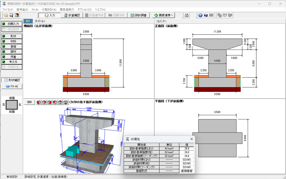 >>橋脚の設計・3D配筋(R7/H29道示対応)