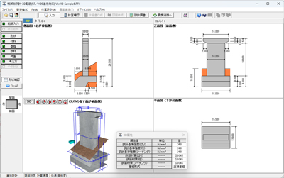 はり形式の小判形については、安定計算時の自重・慣性力のみに考慮し、断面計算は不可。フーチング形状 テーパーなしから全方向テーパーまで対応