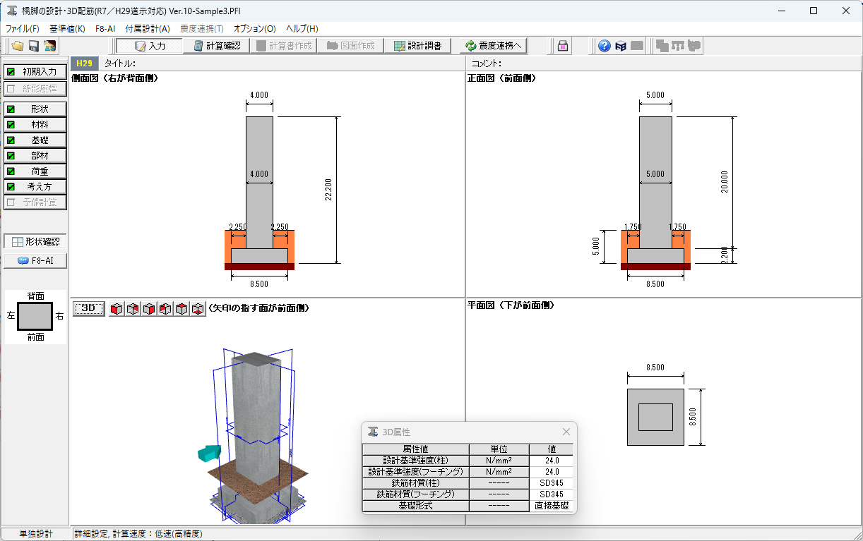 深礎フレームの設計・3D配筋(R7/H29道示対応)