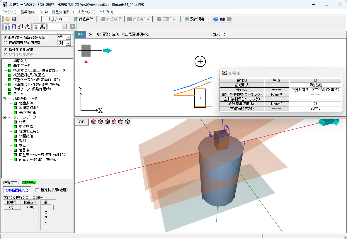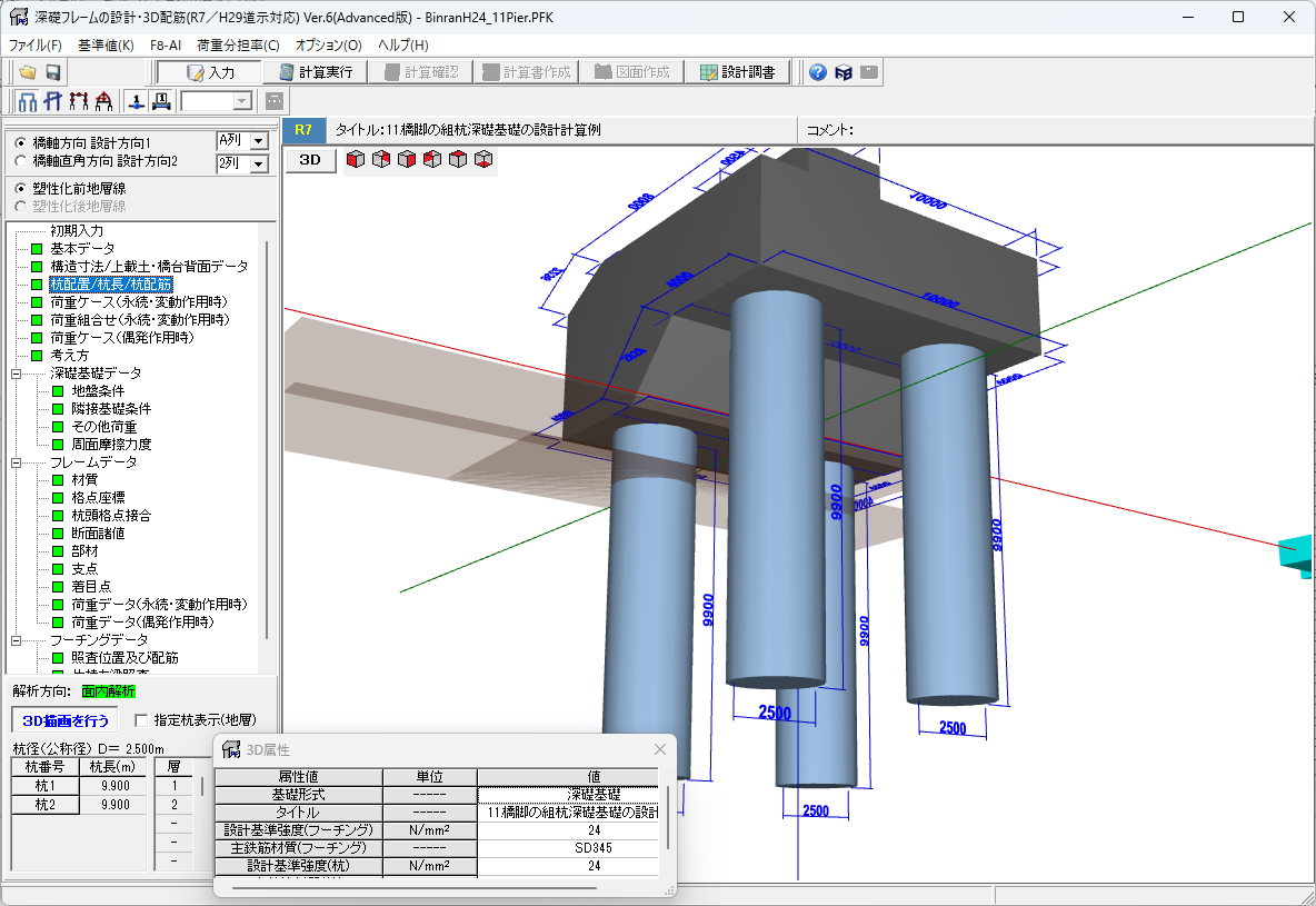 | 深礎フレームの設計・3D配筋(R7/H29道示対応) Ver.6 | ||