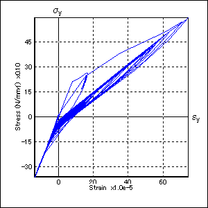 | ガウス点 | X方向ひずみ | X方向応力度 (N/mm2) | Y方向ひずみ | Y方向応力度 (N/mm2) |