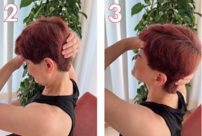 3 上を向きながら後頭骨は下に、額は上に向かって軽く圧迫する。