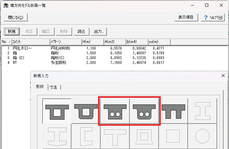 橋台設計時の基礎形式について、直接基礎/杭基礎/杭基礎(2.5次元解析)/深礎基礎に加えてケーソン基礎と鋼管矢板基礎を追加します。基礎形式は、「初期入力」画面において選択することができます。