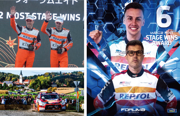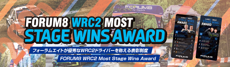 まさに各ラウンドの最速の称号として与えられるのが「FORUM8 WRC2 Most Stage Wins Award」だ。